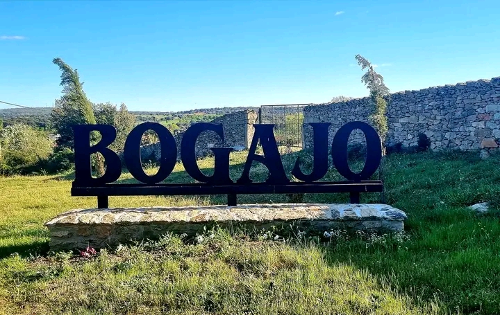 Aquí puedes observar la panorámica que se ve al entrar al pueblo, cuando se viene desde Yecla de Yeltes. En este punto, justo antes de acceder al núcleo rural por el extremo norte, se encuentra el cementerio. Además desde 2022 hay también un un gran rótulo de hierro con el nombre de municipio en grandes letras, que primero eran negras y posteriormente se pintaron de blanco, en el mismo punto donde anteriormente se situaba un cartel con información de la provincia y del municipio colocado por la Junta de Castilla y León. El rótulo con el nombre de Bogajo, igual a otro gemelo que se encuentra en la entrada por el oeste, según se viene de Cerralbo, lo puedes ver en las dos últimas fotografías grandes de esta sección, mientras que el cartel que existía en el pasado lo puedes leer con detalle pinchando en la foto en miniatura superior correspondiente, ya que se abrirá una imagen ampliada de éste. Y no dejes de mirar las vistas del pueblo que se ven desde este lugar. |