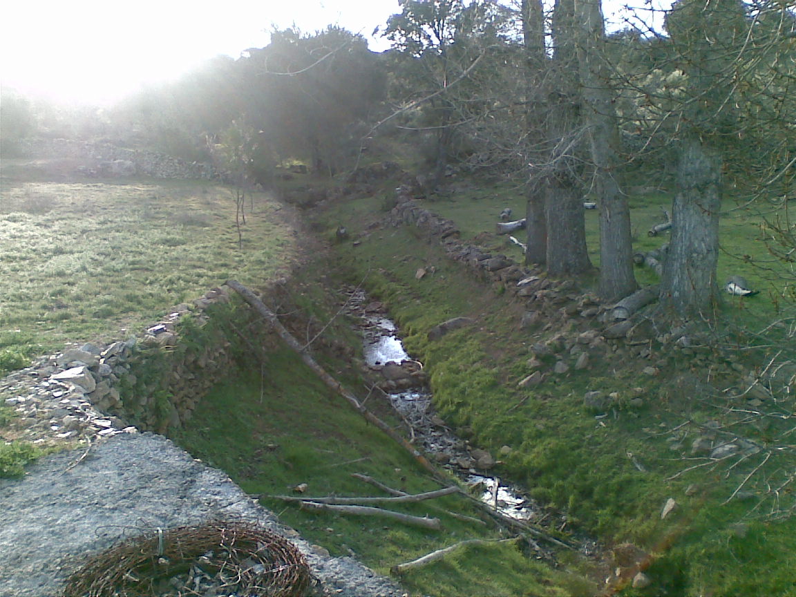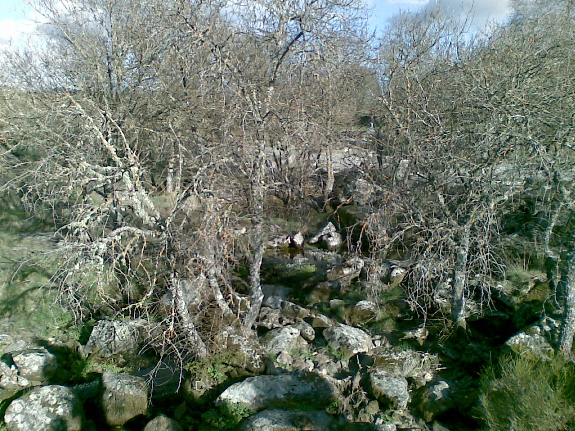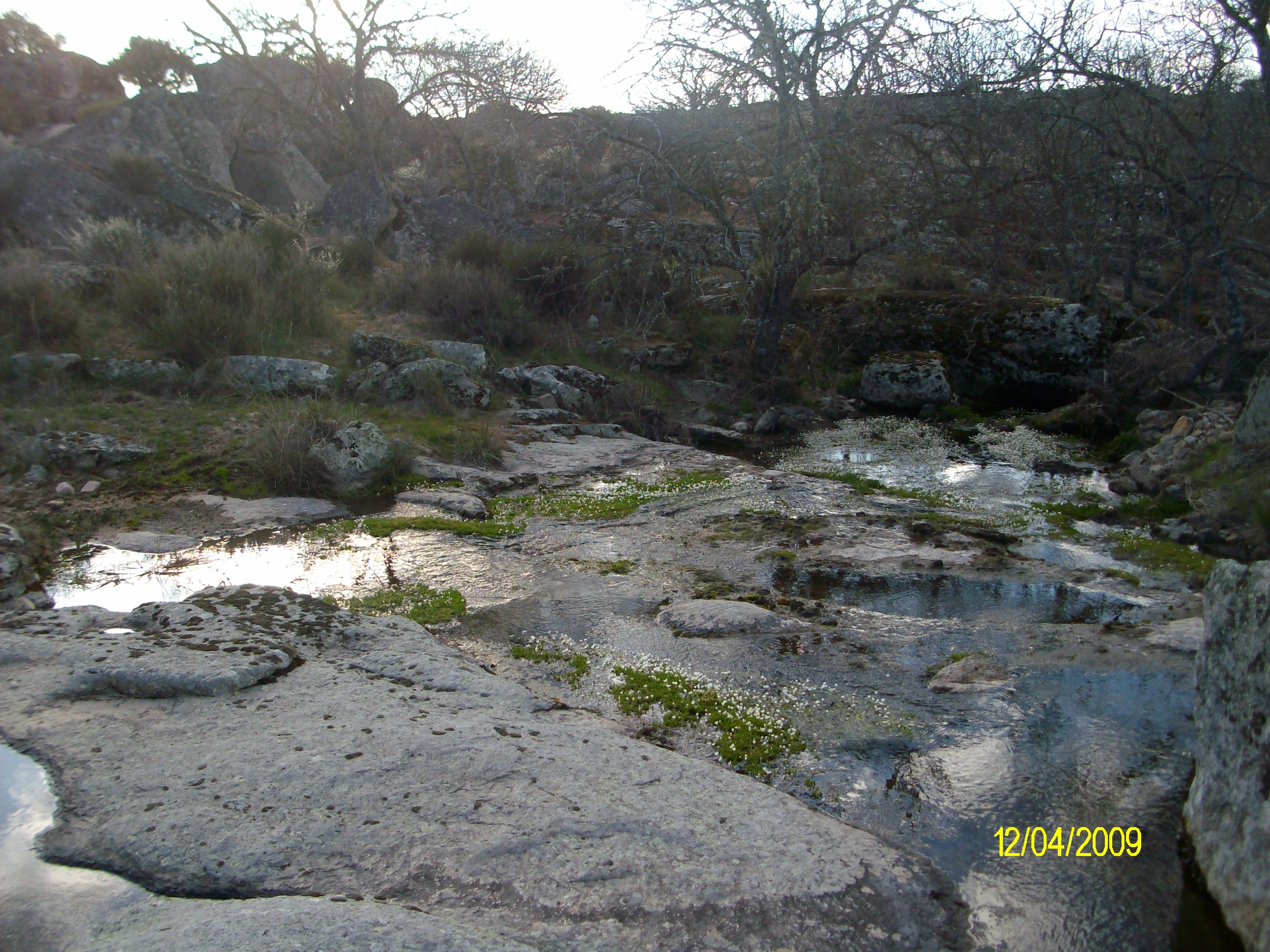Además de los ríos Huebra y Yeltes, que delimitan el territorio del municipio al norte, por los terrenos de Bogajo también existen otros caminos fluviales. Están los regatos de la Robaldea y Nabas que lo recorren por el centro, y el arroyo del Bogajuelo al este. Es precisamente este último, que desemboca en el río Yeltes antes de su confluencia con el Huebra, el más importante de los tres aunque sus aguas corran sólo en invierno, ya que en verano el agua se estanca formando caozos a lo largo de su recorrido. Este arroyo nos muestra grandes paisajes al paso de sus aguas, como pontones para cruzarlo o pequeñas cascadas, sin olvidarnos de la Fuente de la Ribera, un manantial natural que surge bajo unas peñas. Además, en las proximidades del cauce a lo largo de todo el arroyo podemos encontrar dos molinos y varias casetas de piedras en las que antiguamente se refugiaban los pastores. Todo esto que acabo de comentar lo puedes ver en las fotos de aquí debajo, y además puedes disfrutar de un vídeo en el que se ve la bajada del agua encajonada entre las rocas. |